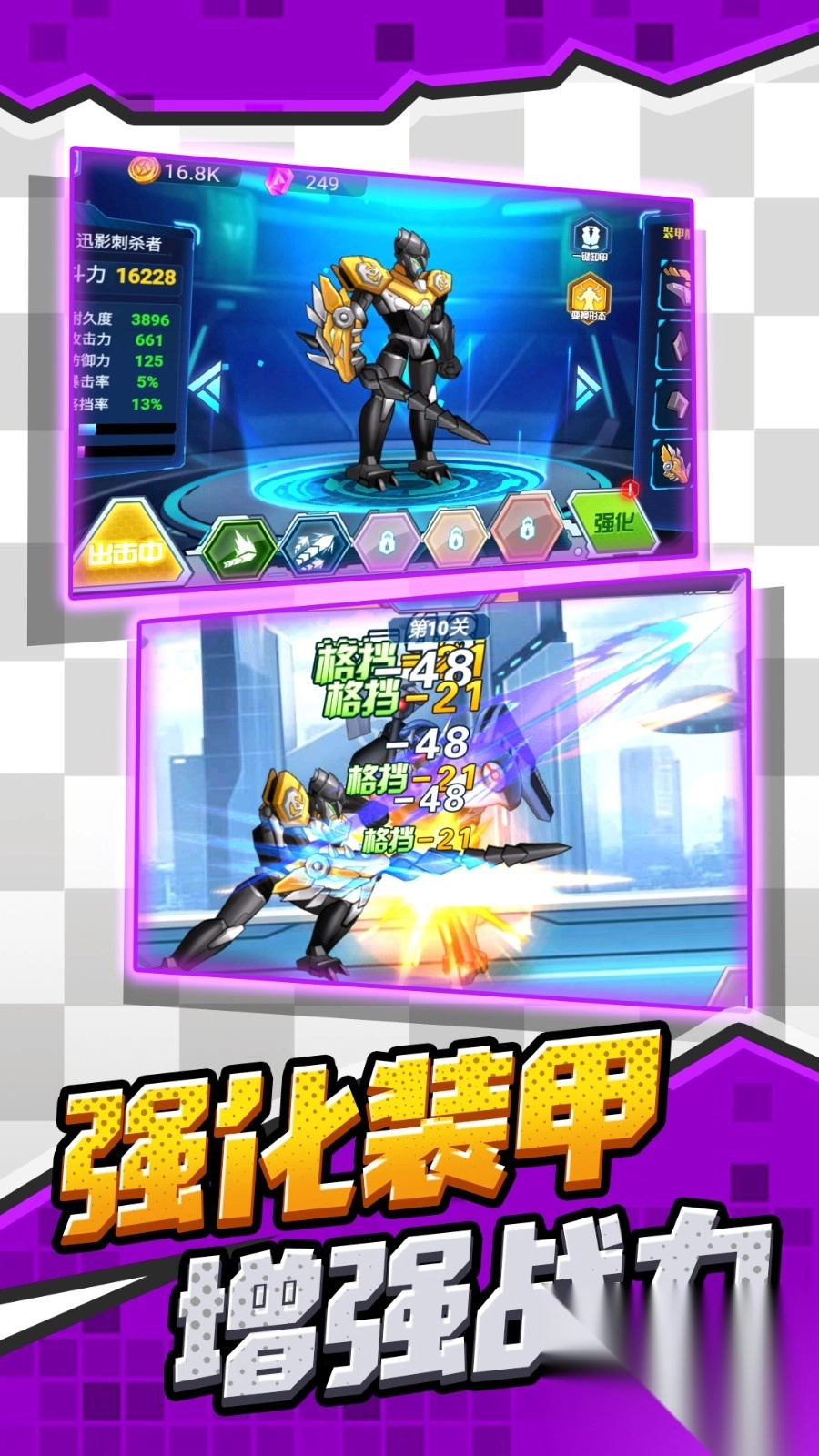 通过资源强化机甲装甲,以此提升作战能力,解锁全新的技能属性,助力机甲不断变强,让闯关过程更加轻松。