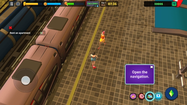 这是一个开放世界,你能够选择步行、乘坐汽车、地铁或者出租车出行。