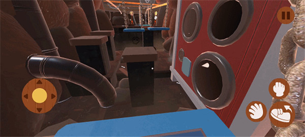 走到尽头后可以拉开开关,如果不小心掉下去,只要对着下方的墙壁持续按跳跃键“爬”就能上去,不用重新跑一趟啦。拿到零件后装到车前(之前两个装在车尾,这次往车头方向走就能自动安装),接着倒车就行。