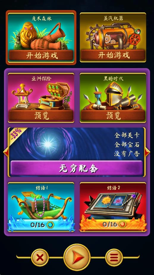 解开当前场景的所有谜题,以此推进剧情,解锁新场景与更复杂的挑战,直至完成全部解谜任务。
