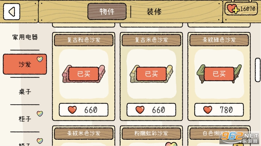 家具的绘画风格确实十分清新可爱,样式与颜色还能进行多样搭配,就好像在打理自己真实生活里的家一样。