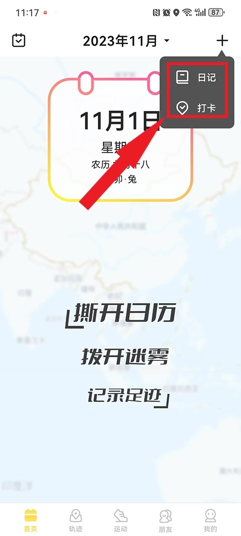 用户在本站打开软件后,可在首页右上角点击加号,选择日记或打卡功能。