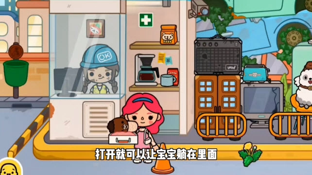 抱着娃娃来到废品店,那里有个医疗箱,打开后就能把娃娃放进去躺着。