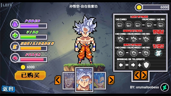 4、孙悟空:龟派气功、元气弹、龙拳。经典的街机风格,带你重温当年的操控模式,左侧轮盘负责角色移动,右侧按键释放技能,快来再次打出超炫的连击吧。