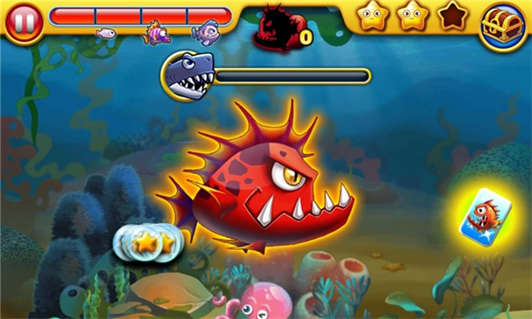 大鱼吃小鱼游戏手机版采用经典的大鱼吃小鱼休闲玩法,玩家在游戏里将化身一条小鱼开启冒险之旅。从最初只能吞食虾米开始,随着体型逐渐增大,你可以依次捕食更小的鱼、体型相当的鱼,乃至到后期连鲨鱼都能纳入腹中,让自身不断成长壮大。感兴趣的朋友不妨亲自体验一番,感受这种充满乐趣的大鱼吃小鱼玩法。