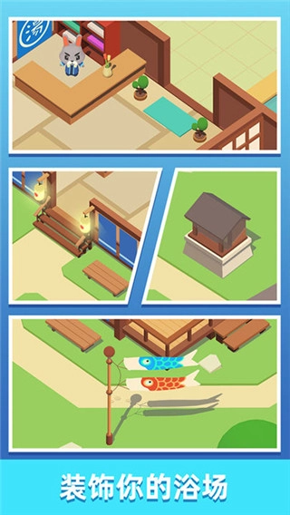 玩家需要对浴场进行装饰,并且升级浴场的各类设备,核心目标是打造一个美观漂亮的浴场。