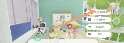 进入童话小镇后,前往宠物店的楼上,找到贝莉,点击消息图标和她对话。