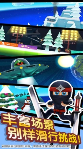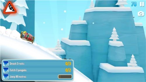 同时也得完成游戏设定的任务,每局开局系统都会发布若干个需要达成的小任务,一般是完成高难度动作、收集奖励之类不太复杂的内容,完成后系统会提供各类奖励,随着任务一步步解锁,游戏会变得更加紧张刺激。滑行过程中还会遇到木屋、搭板、指示牌之类的物体,要是能合理利用这些东西,就能辅助角色滑行;但如果接触的方式稍有差错,它们就可能成为逃生路上的新阻碍。就拿木屋来说,如果玩家能找准合适的角度从房顶滑入,房顶的弧度就能当作加速坡来用;可一旦角度不对,角色就会毫无悬念地摔倒。