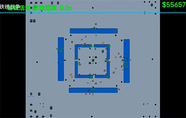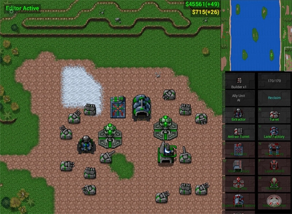 玩家开局拥有55000资金、一座基地、8个建造者、12辆悬浮坦克、8座t2机枪炮塔以及8座防空炮塔。