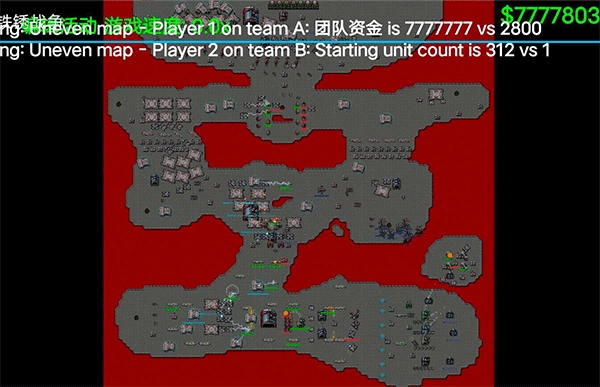 敌对红色AI开局拥有7770000资金、基地、4个陆军工厂、概念型坦克,以及8艘各装载小坦克的登陆艇。