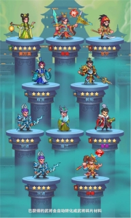 每个武将最多可装备4件装备,涵盖武器、防具与饰品三类;关卡通关进度越往后,掉落装备的品质通常越高。装备品质从低到高依次为绿色、蓝色、紫色、橙色和红色,并且所有品质的装备均支持精炼操作。