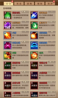 每位武将都有一个自带技能,武将的品质越好,其自带技能的品质相应也会越高。每个武将最多能拥有4个技能,其中自带技能可借助升星来提高等级,另外可装备的3个技能则能通过兵书来提升等级。