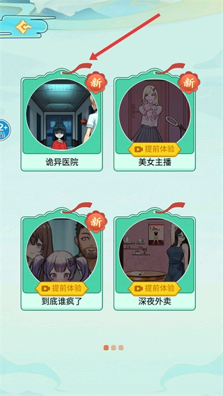 选择诡异医院关卡进入医院场景,开启游戏的解谜探索以推动剧情发展。