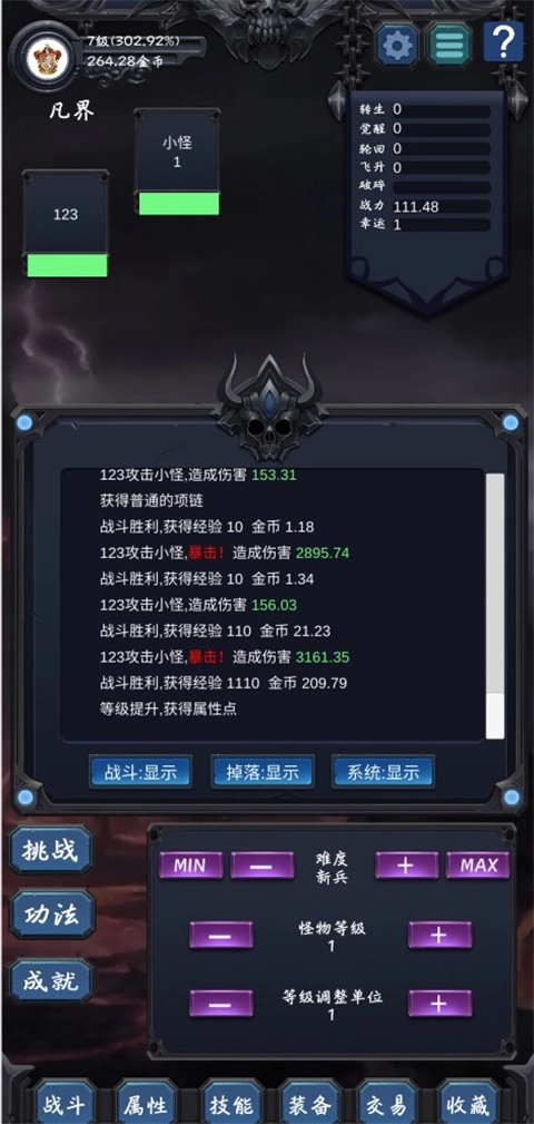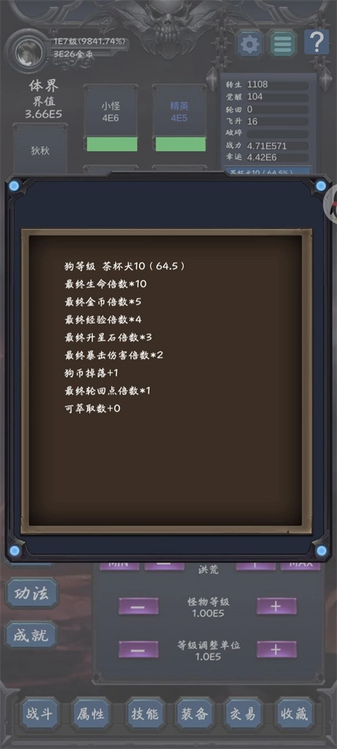 新增九重天机制,当属性位数达到E1E15时,即可突破一重天