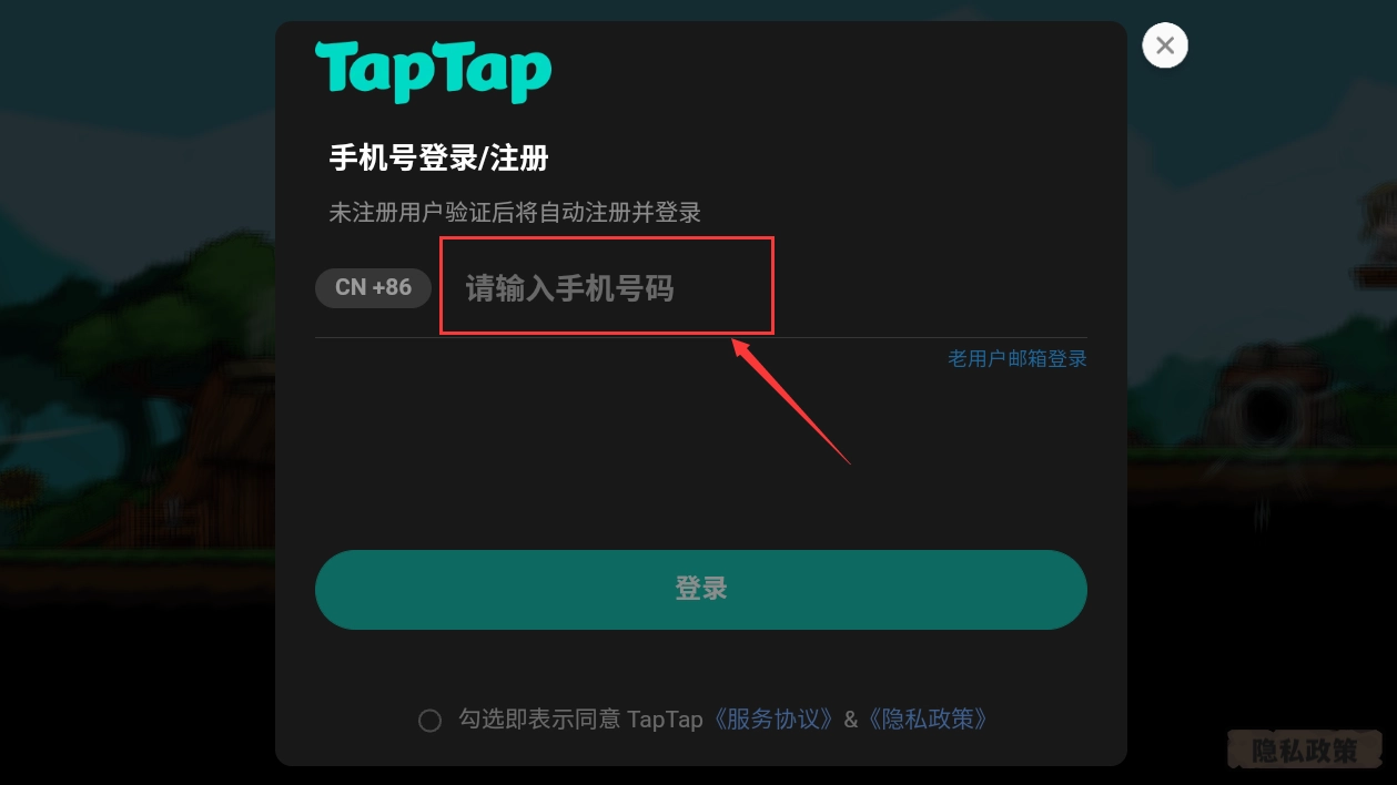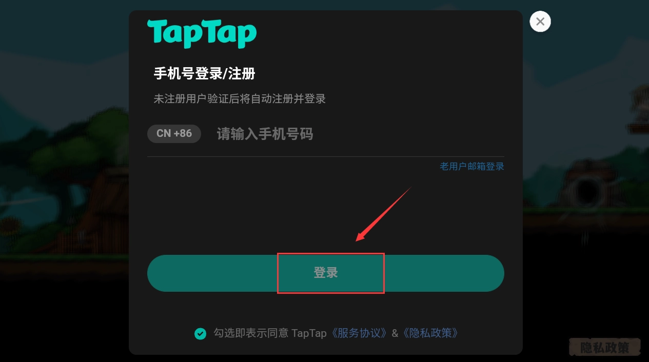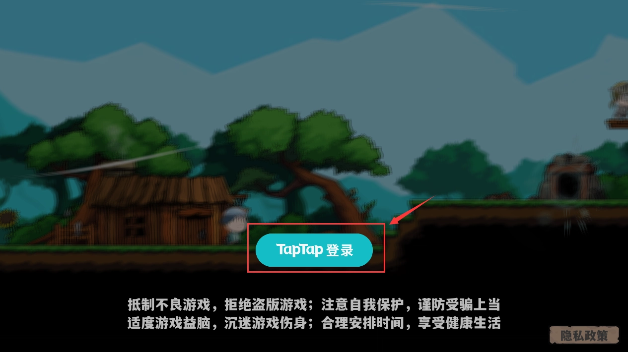 请点击红框内的TapTap登录按钮,通过TapTap账号登录游戏。