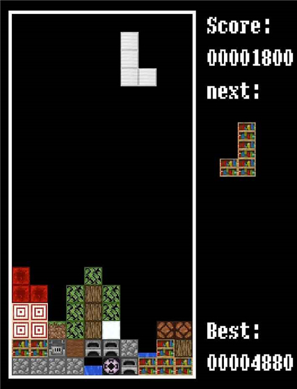 俄罗斯方块搭配MC贴图与MC背景音乐,能让人同时感受到这两款销量顶尖游戏的乐趣。
