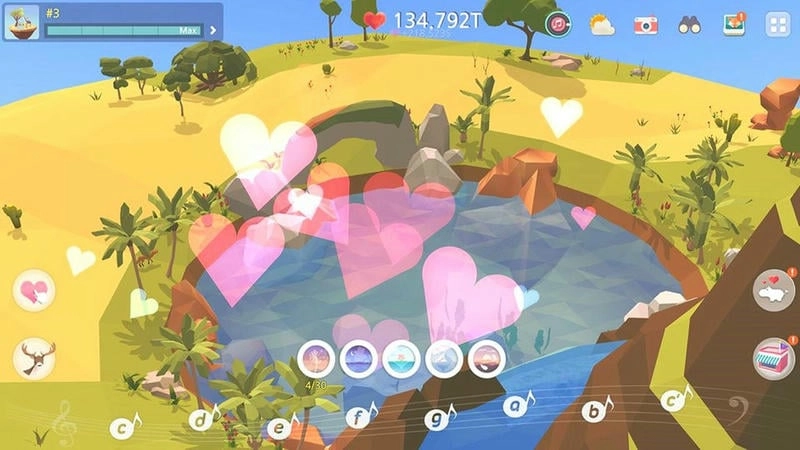 进入游戏后抵达初始岛屿,轻点屏幕任意位置来收集爱心,熟悉收集的节奏和基础操作,为后续的装饰环节积累所需资源。