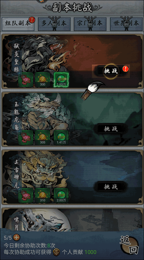 宗门守护(开服第4天解锁):该玩法解锁后,每日20:00准时开放参与,同一宗门的玩家将携手抵御宗门守护。在挑战中对宗门守护造成伤害越高的玩家,所能获取的奖励也将更为丰厚。