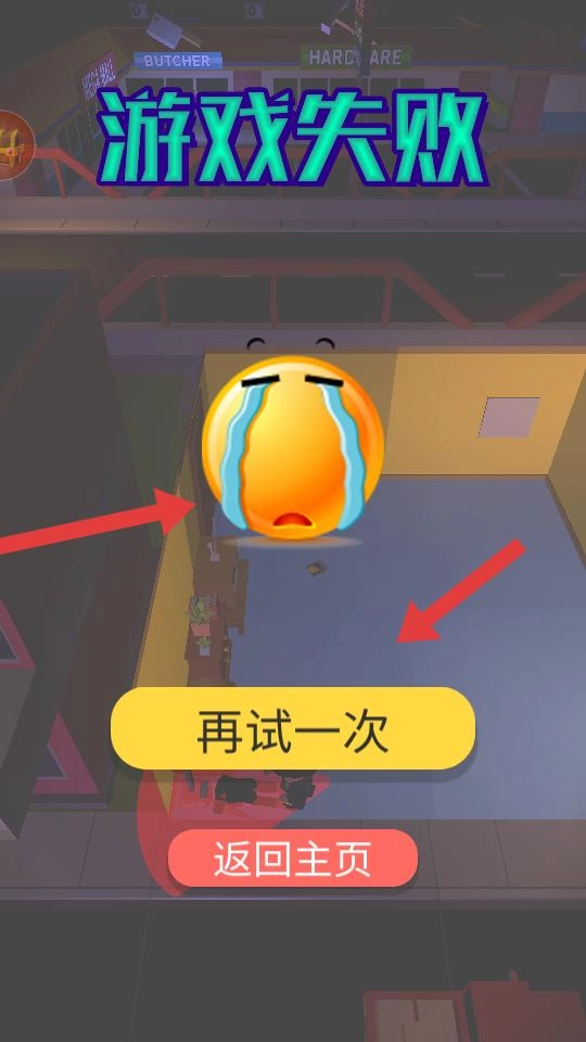 要是任务没能完成,就会弹出游戏失败的提示框,你可以点击“再试一次”按钮重新发起挑战,也可以选择返回主界面,重新制定偷袭的计划。
