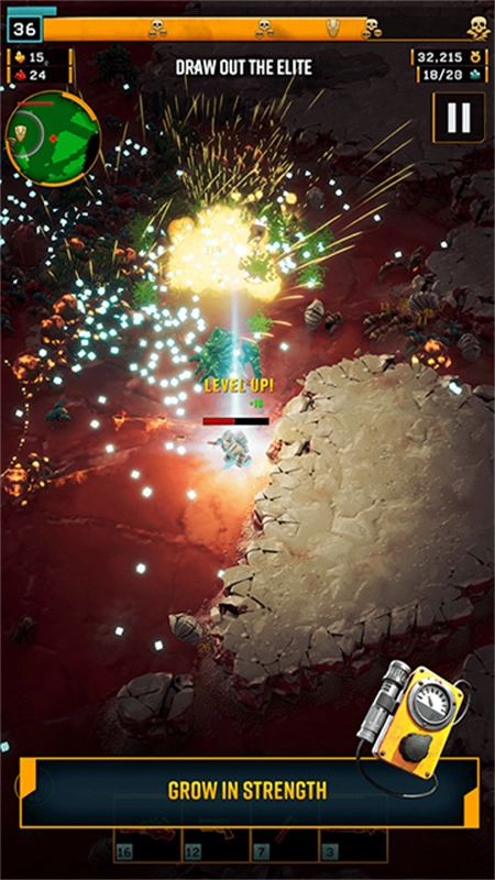 5、本游戏采用自动射击机制,玩家可通过消灭虫群积累经验值以提升等级,每次升级时都能从多个强化选项里挑选一项。