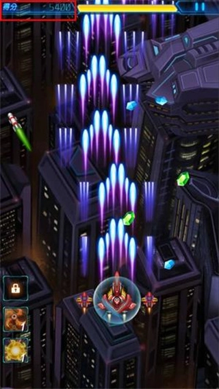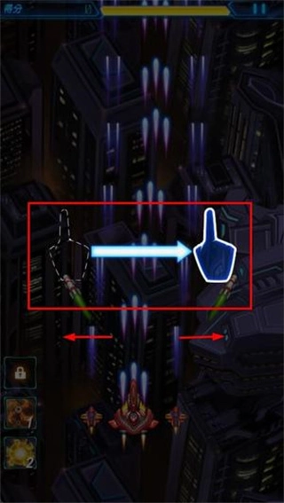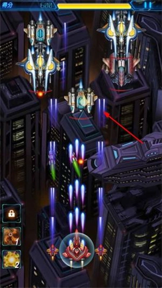 1. 借助重力感应功能或虚拟摇杆来操控战机的飞行方向,同时利用屏幕两侧的按键分别发射主武器和副武器展开攻击。