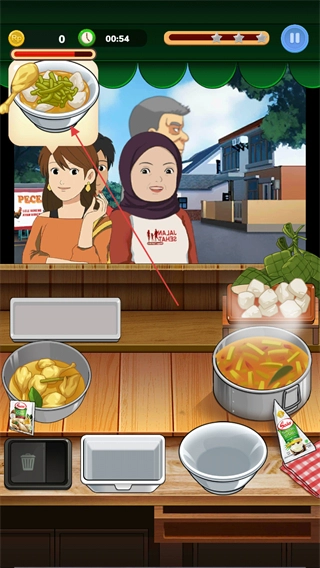 2、进入关卡后,依据顾客需求的菜品样式,选取对应的食材,按要求制作对应餐食以完成顾客的订单需求。