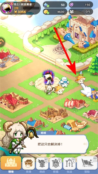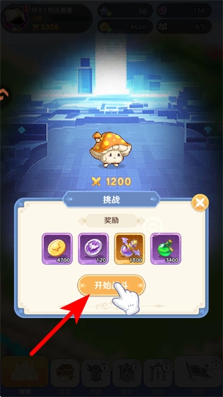 在城堡场景里,我们得点击目标怪物(就像图里的蘑菇怪那样)来触发挑战流程,这是开启战斗玩法的关键操作。选定怪物之后就能进入挑战环节,既能推进进度,又能积累资源。