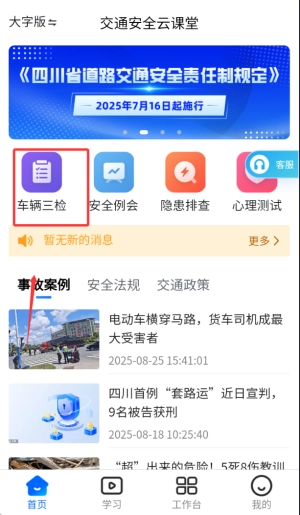 2、车辆三检模块详细指导用户进行出车前检查、行驶中观察与收车后维护等标准化操作流程。