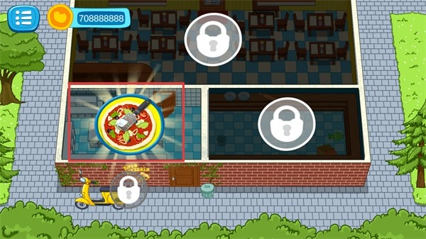 2、选择未锁定的披萨操作区域,解锁对应功能,推进餐厅的经营与制作进度。