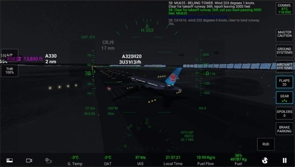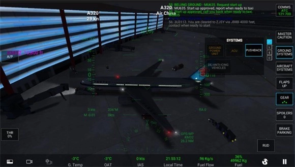 10、启动发动机后向塔台申请移动飞机,完成对话后点击地面辅助倒退车,随后驾驶飞机前往指定跑道,若未在指定跑道则无法起飞。