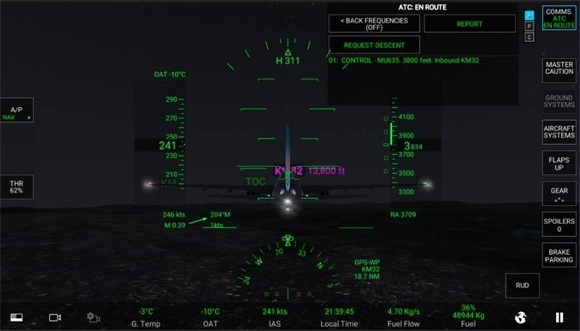 1、游戏里飞机的飞行操控高度还原了真实飞行的物理机制。玩家得熟练运用方向舵、襟翼、扰流板、反推力装置、自动刹车以及起落架等各类飞行控制部件,亲身感受真实的飞行操作流程。