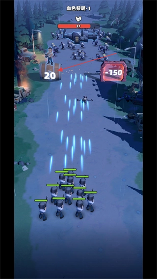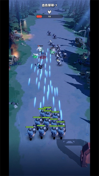 3、血色黎明-1关卡的战斗后期,己方部队持续攻击剩余敌人,上方进度条对应敌方剩余数量的变化,逐步满足关卡的胜利条件。