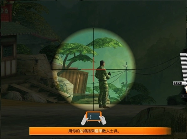 2、用你的左手拇指瞄准敌人士兵,准备进行射击