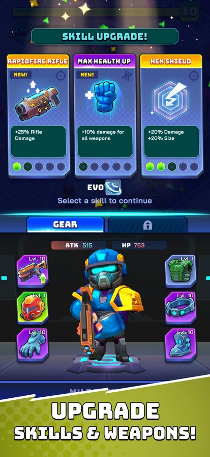 3、你能否顺利撤离?你会不会成为最后的幸存者?升级你的小队,强化你的武器,持续消灭虫族吧。