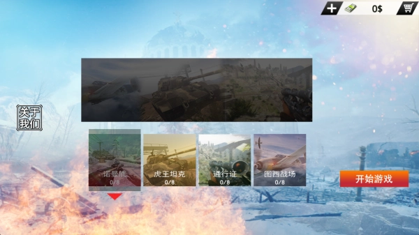3、除了宏大震撼的单人战役外,游戏还设有团队死斗、据点占领、大型征服等多样多人模式,以满足不同偏好玩家的需求。游戏包含诺曼底、虎王坦克、通行证等多样玩法模式,玩家可自行挑选进入,开启二战主题的射击体验。