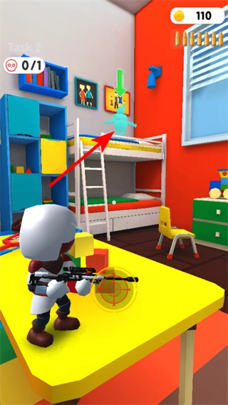 4、进入新关卡后,瞄准场景中的目如房间内的剪影,继续通过射击操作完成任务,持续推进关卡并积累奖励。