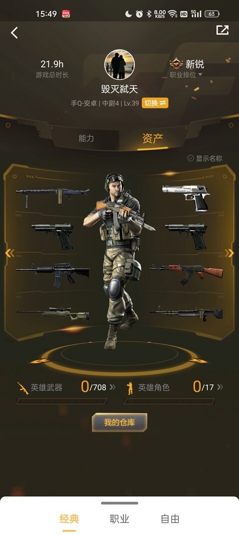 4、点击下方的我的仓库,就可以查看游戏中的所有游戏武器和道具了。