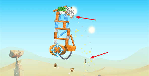 进入游戏关卡后,左侧设有一个弹弓,玩家拉动它即可发射角色。