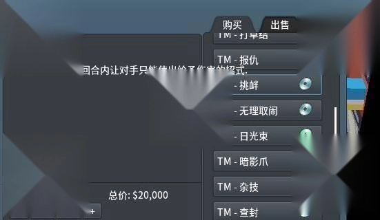 2、前往吹寄市的精灵中心,与店员对话后打开商品列表,找到“挑衅”技能并完成购买,角色就会自动掌握该技能。