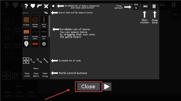 2、进入物品选择界面后,把【Crate】【BrickWall】这类物品图标拖曳到游戏板上,就能生成相应的道具来搭建场景。
