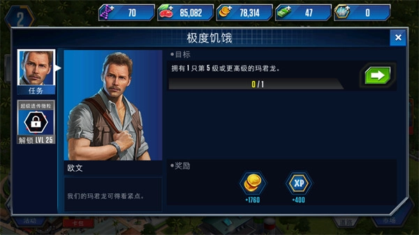 5、完成每日的日常任务,能够获取到大量资源,这些资源可以用来提升建筑等级、升级恐龙以及孵化恐龙。