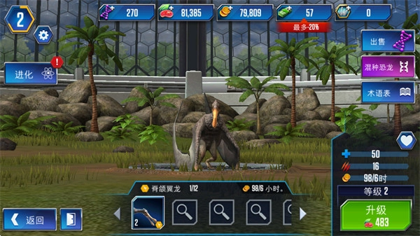 1、升级恐龙进一步提升恐龙星级与战斗力。