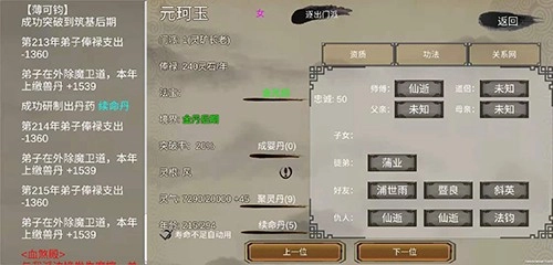 2、在弟子列表里挑选合适的弟子,比如【隆静迅】、【齐瑜英】这类,通过赠予道具来提升他们的修为、忠诚度以及宗门贡献。