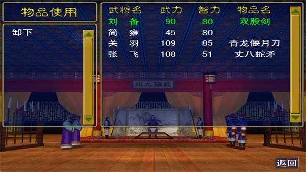 武器方面,顶级装备涵盖倚天剑、青缸剑、七星剑、双股剑、青龙偃月刀、丈八蛇矛、方天画戟、两刃斧、双铁戟、铁蒺藜骨朵、古腕刀等,这类神兵利器能显著提升武将的武力数值。其中部分武器有专属的持有者,像刘备使用双股剑、关羽配备青龙偃月刀、张飞运用丈八蛇矛、吕布执掌方天画戟、曹操佩戴倚天剑、王允收藏七星剑、夏侯恩携带青缸剑、孙坚手握古腱刀。建议在俘获对应的武将后,依据实际情况转移这些武器,优先分配给主力输出类型的将领。而普通武器里,风嘴刀、脊蛇铁矛、月牙戟、大斧、三尖刀可增加4点武力值;短锥枪、眉尖刀、流星锤则能增加2点武力值。