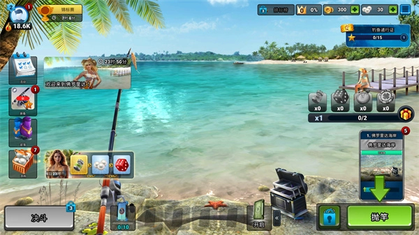 1、打开游戏,选择右下角的抛竿图标,这样就能开始钓鱼。