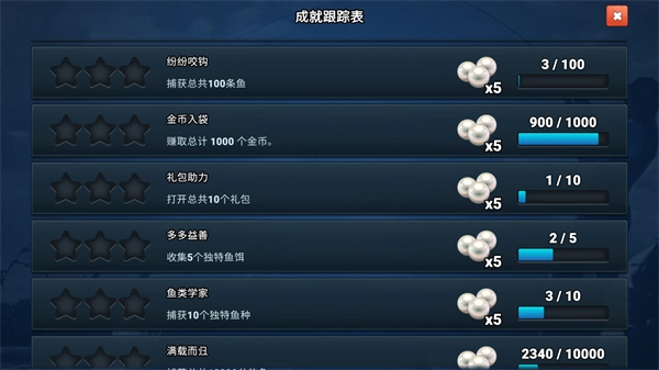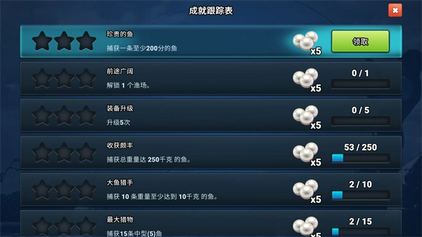 1、游戏中有很多的成就,玩家只要按照要求完成,就能领取对应的珍珠奖励。