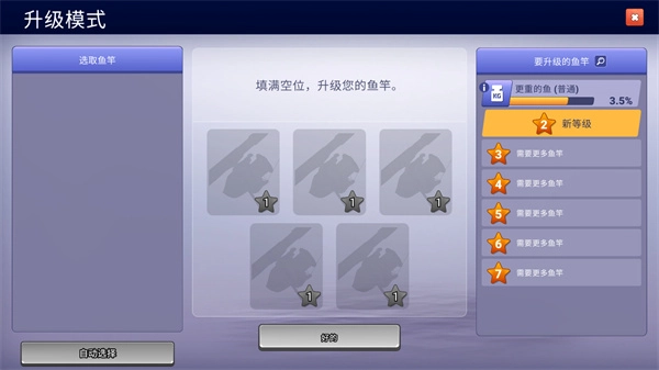 2、玩家只要选择一个合适的鱼竿,就能直接替换,当然也能去升级鱼竿。