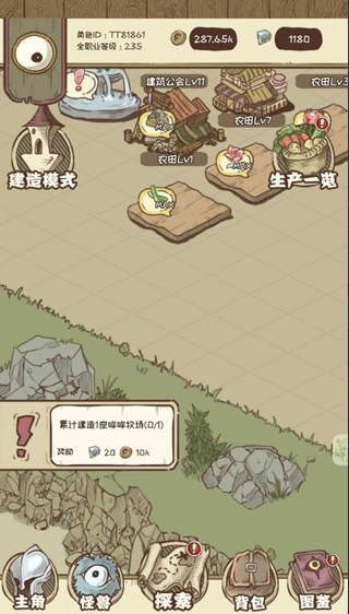 1、游戏开始首先建造农田,每建造一次后下一次建造就会更耗费材料