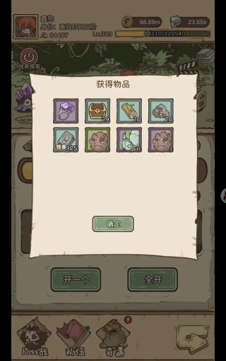 5、备好食物、组建好队友后就能开启探索,遇到宝箱时能从中获取各类物资。另外,探索过程中可以返回基地,且探索时间不会中断。