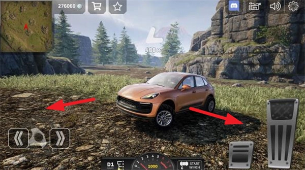 2、左下角的按键用于控制车辆的移动方向,右侧的按键分别对应刹车和加速功能。